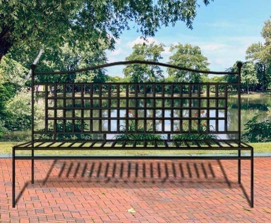 Wrought iron could be a good choice for an outdoor bench in almost any environment. It brings out a great sense of style in any setting and especially in a home setting. It is durable and can withstand adverse weather conditions such as hot and cold temperature extremes but isn’t a good choice poolside, seaside, or in waterparks.