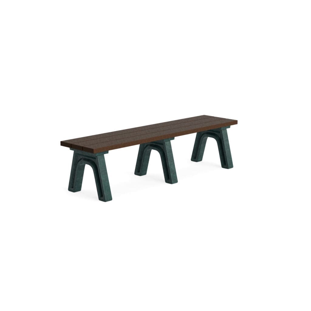 We make 8 styles of flat benches without backs that not only fill a niche, but are also very affordable. They are used as sideline benches at sports fields, locker room benches in sports facilities and golf courses, and outdoor benches for schools. Backless benches are also an affordable option to place in the center of wide walkways because they can serve guests from both sides and also separate opposing traffic.