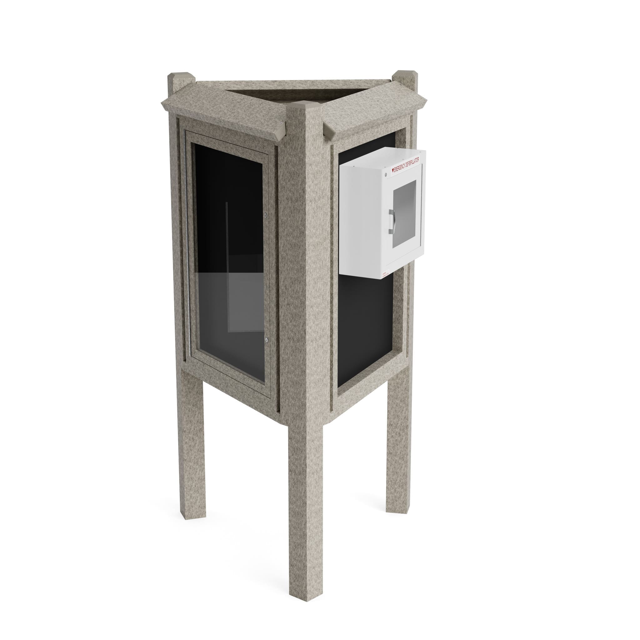 The AED/Emergency Kiosk Station is designed to keep the public informed and safe throughout the year. Our kiosk is 3-sided, with two sides dedicated to displaying life-saving information and one side to fasten emergency equipment. Made from 100% recycled plastic, our kiosk is built to withstand the year-round elements. A convenient way to display emergency information and provide life-saving equipment to those in need. Perfect for trails, playgrounds, colleges, schools, city, or amusement parks. The 4” x 4” mounting posts are 6’ long and can be surface mounted on a concrete pad/wooden deck or in-ground mounted with anchor kits readily available at most lumberyards and home centers. DOES NOT INCLUDE AED DEVICES.