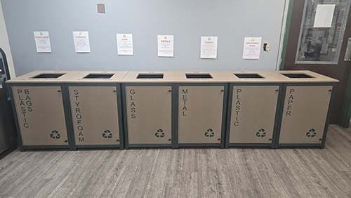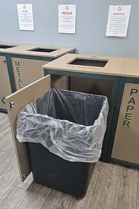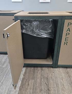 - Liners Included: Say goodbye to the hassle of sourcing compatible bags. The Interior Two-Toned Receptacles comes with liners included, designed to securely hold and easily swap out bags, streamlining the collection process for recyclables.